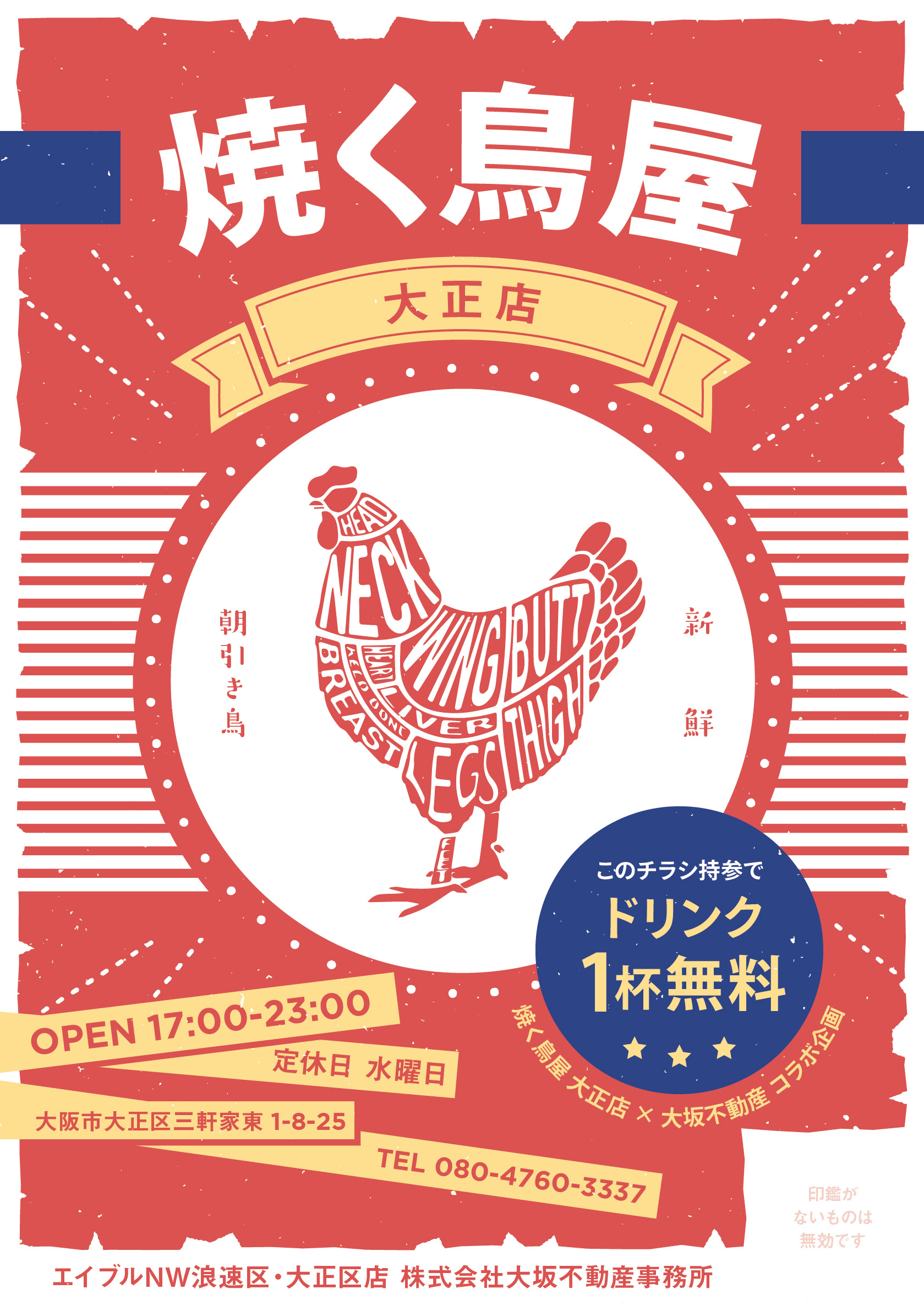 大阪大正区にあるセルフ焼き鳥屋のチラシを制作しました。
